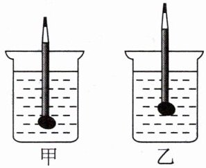 6. 小明在一支铅笔的下端粘上一块橡皮泥,将它分别置于甲、乙两杯液体中,观察到铅笔静止时的情形如图所示,此时两杯中液面恰好相平。液体对甲、乙两烧杯底部压强分别是$p_{甲}$、$p_{乙}$,液体对物体的浮力分别是$F_{甲}$、$F_{乙}$,下列判断正确的是 (