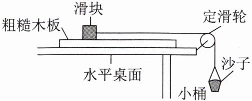 18. 物理兴趣小组为了测量滑动摩擦力的大小,设计了如图所示的实验装置。实验中,小桶内装入适量的沙子,滑块恰好做匀速直线运动 (轻绳与滑轮的摩擦不计)。
