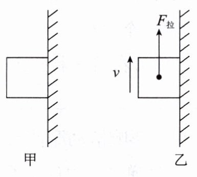N;若对磁铁施加一个竖直向上的拉力,$ F_{拉} = 16N $,磁铁将沿着铁板匀速向上运动,如图乙所示,此时磁铁受到的摩擦力大小为6