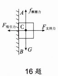 16. 如图,AB是固定在墙壁上竖直的铁质黑板,C是一块磁体。C吸附在AB表面上静止不动。画出C受到的所有力并标出力的名称。