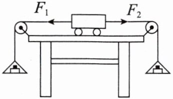 18. 如图所示,小车在水平方向受到两个力的作用,我们通过观察小车在水平方向受到不同的两个力作用时,小车是否处于静止来探究二力平衡需要满足哪些条件。