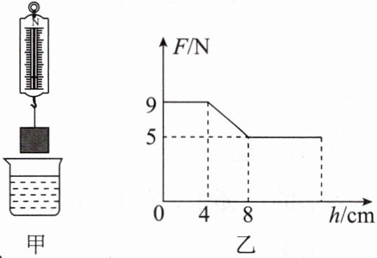 10. 弹簧测力计下挂一长方体物体,将物体从盛有适量水的烧杯上方离水面某一高度处缓缓下降,然后将其逐渐浸入水中如图甲;图乙是弹簧测力计示数F与物体下降高度h变化关系的图像。下列说法中正确的是(g取10N/kg)(