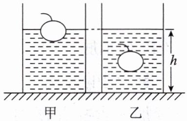 8. 水平桌面上有甲、乙两个完全相同的容器,甲容器内盛有适量的A液体,乙容器内盛有适量的B液体。将同一个苹果先后放入甲、乙两个容器中,苹果静止后的浮沉状况及液体的深度如图所示。对图中情景分析正确的是(