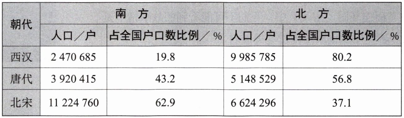 16. 下表为中国古代南北方人口总数及所占比例对照表。