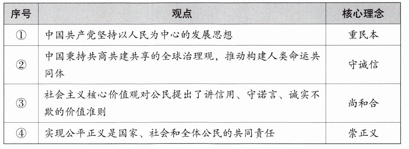 1. 中华优秀传统文化已经成为中华民族的基因,根植在中国人的内心,潜移默化地影响着中国人的思维方式和行为方式。下列核心理念与观点对应正确的是 (