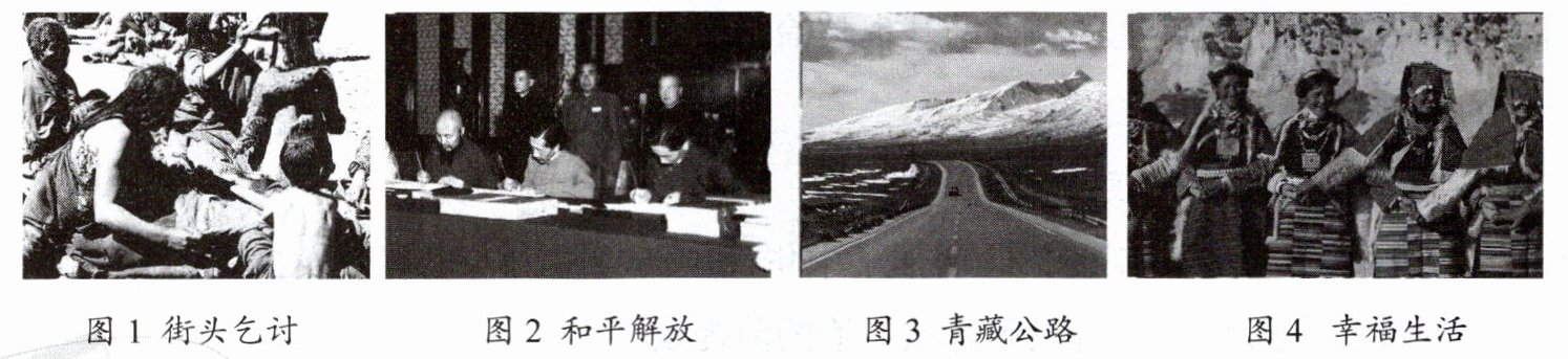 21. 某校八年级(8)班同学举办了一次主题为“西藏今昔”的图片展览,下面就是其中的四幅。阅读图片,回答问题。