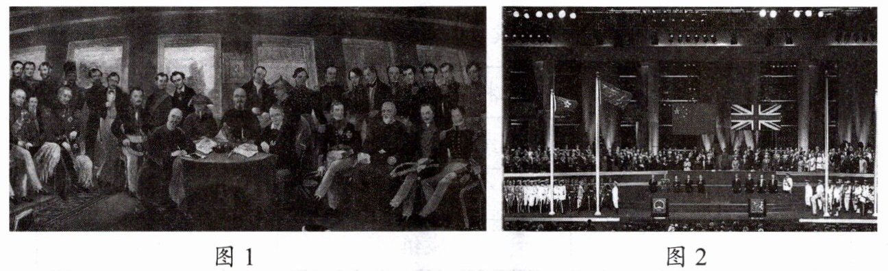 (3) 材料中的两幅图片形成了鲜明对比,图1反映的是清政府被迫签订条约割让香港岛的情景,图2反映的是收回香港的情景。“割让”与“收回”的根本原因分别是什么? 割让原因: