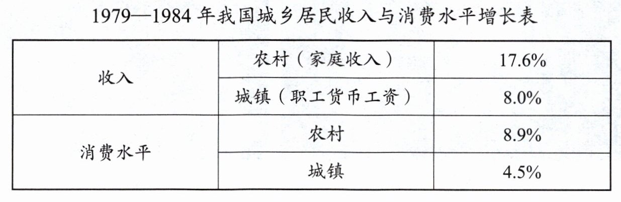 (2) 结合所学知识分析,造成该表中农村收入与消费水平的增长明显高于城市的主要原因是什么?