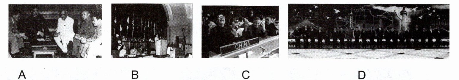 15. 在学校举办的新中国外交成就展活动中,其中的一幅图片下的注释为“中国迄今举行的规模最大、规格最高的多边外交活动”。这幅图片应是 (