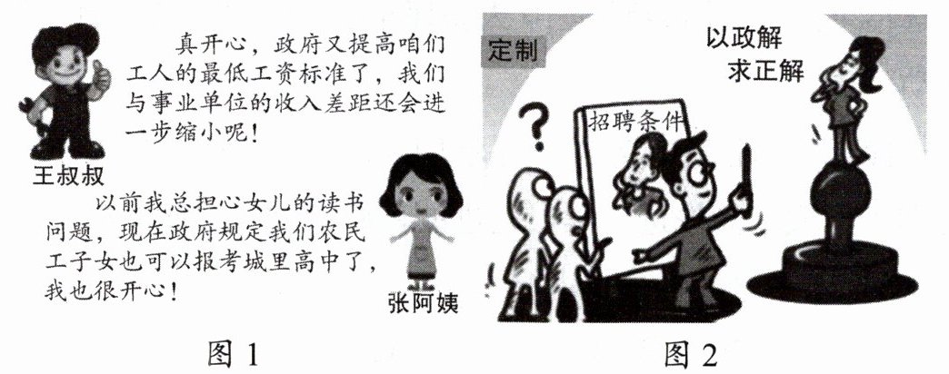 (1)阅读图 1 中王叔叔和张阿姨的对话,请任选一件开心事,从社会公平的角度分析政府这样做的合理性。