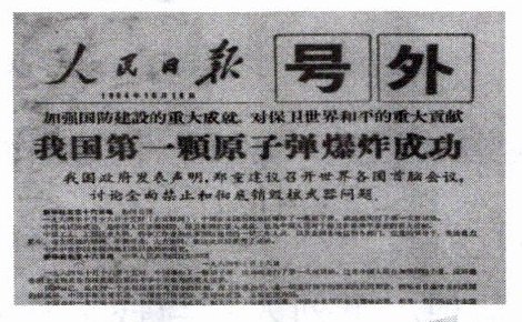 14. 在旧报纸上我们往往能找到过去的记忆,从历史长河中发现点点滴滴的往事。那么,通过下面这张头版标题为“我国第一颗原子弹爆炸成功”的《人民日报》,你能推断出这份报纸出版的日期最有可能是(