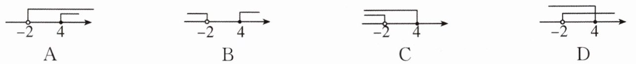 7. 不等式组$\left\{\begin{array}{l} 2x>-4,\\ 3x-5≤7\end{array}\right. $的解集在数轴上可以表示为 (
