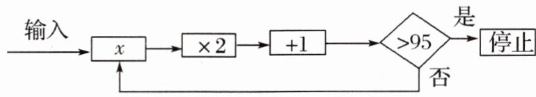 9. 运行程序如图所示,规定:从“输入一个值$x$”到“结果是否$>95$”为一次程序操作,如果程序操作进行了两次才停止,那么$x$的取值范围是 (