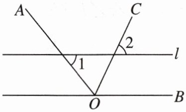 1. 如图,$OC$是$∠AOB$的角平分线,$l// OB$,若$∠1=52^{\circ }$,则$∠2$的度数为 (