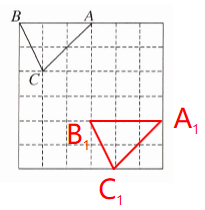18. 如图,在边长为 1 个单位长度的小正方形组成的网格中,三角形 ABC 的顶点 A,B,C 都在小正方形的顶点上,将三角形 ABC 先向下平移 4 个单位长度,再向右平移 3 个单位长度得到三角形 $ A _ { 1 } B _ { 1 } C _ { 1 } $.