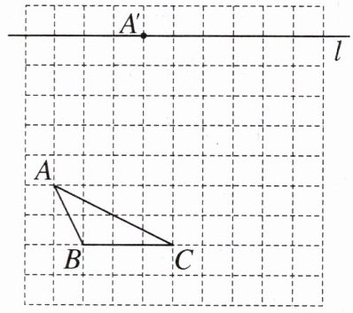 19. 在如图所示的正方形网格中,每个小正方形的边长都为 1 个单位长度,三角形 ABC 的顶点都在正方形网格的格点上,将三角形 ABC 先向上平移 m 个单位长度,再向右平移 n 个单位长度,得到三角形 $ A ^ { \prime } B ^ { \prime } C ^ { \prime } $,图中直线 l 上的点 $ A ^ { \prime } $ 是点 A 的对应点.