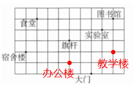 (2)已知办公楼的位置是$(-2,1)$,教学楼的位置是$(2,2)$,在图中标出办公楼和教学楼的位置;