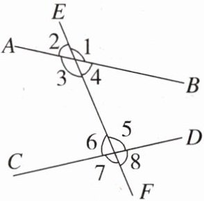 8. 如右图,$∠1$和$∠5$分别在直线AB,CD的上方,在直线EF的同旁,具有这种位置关系的一对角,叫作同位角. (