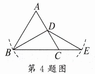 4. 如图,$BD是等边三角形ABC的边AC$上的高,以点$D$为圆心,$DB长为半径作弧交BC的延长线于点E$,则$∠DEC$的度数为()