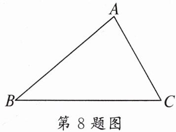 8. 如图,地面上有三个洞口$A,B,C$,老鼠可从任意一个洞口跑出,猫为能同时最省力地顾及三个洞口,尽快抓住老鼠,应该蹲在()