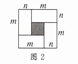 (1)如果选取 4 张 3 号卡片,拼成如图 2 所示的一个正方形,请你用 2 种不同的方法表示阴影部分的面积。