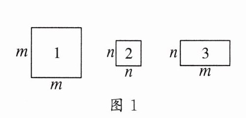 $1$号卡片面积为$m× m=m^{2}$,$2$号卡片面积为$n× n=n^{2}$,$3$号卡片面积为$m× n=mn$。