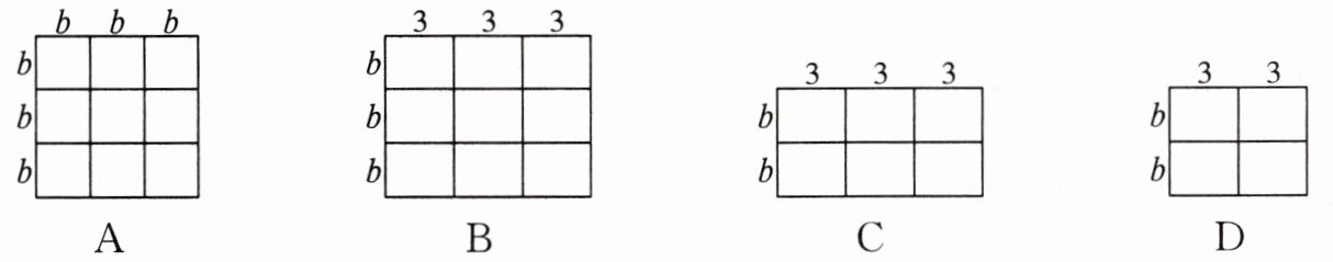 9. 下列图形能够直观地解释$(3b)^{2}= 9b^{2}$的是 ()