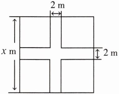 8. 如图,某小区规划在边长为$x\ \text{m}$的正方形场地上,修建两条宽为$2\ \text{m}$的通道,其余部分种草,以下各选项所列式子不是计算通道所占面积的是 ()