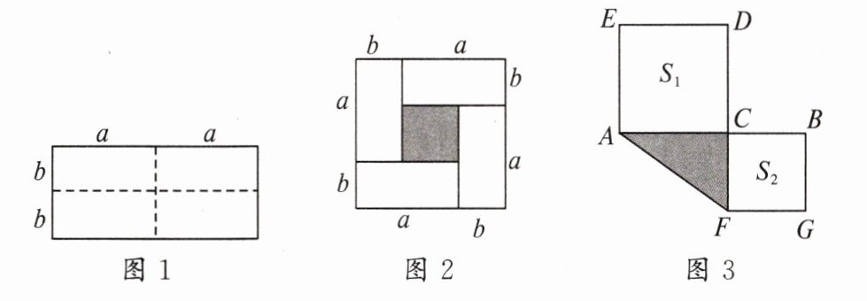 ### $(2)$用两种不同方法表示图$2$中阴影部分的面积并建立等式