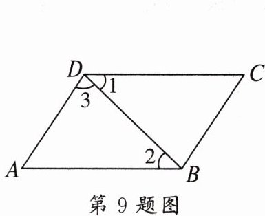 9. 如图,下列条件:①$∠1= ∠2$;②$∠ABC= ∠C$;③$∠3= ∠DBC$;④$∠A+∠ADC= 180^{\circ }$。能判定$AB// CD$的条件有 ()
