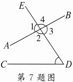 7. 如图,直线AB,CD被直线DE所截,则$∠D$的同旁内角是 ()
