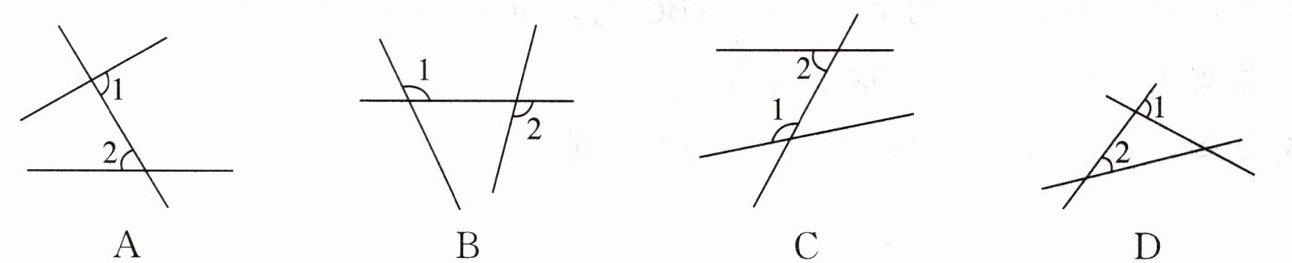6. 如图,$∠1和∠2$是内错角的是 ()