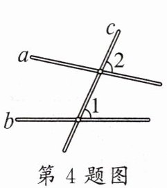 4. 如图是小星探索两直线平行的条件时所用的学具。木条a,b,c在同一平面内,经测量$∠1= 65^{\circ }$,要使木条$a// b$,则$∠2$的度数应为 ()