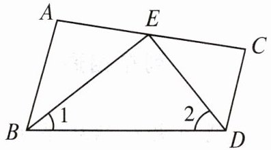 因为$BE$平分$∠ABD$,$DE$平分$∠BDC$,根据角平分线的定义,所以$∠ABD = 2∠1$,$∠BDC = 2∠2$。