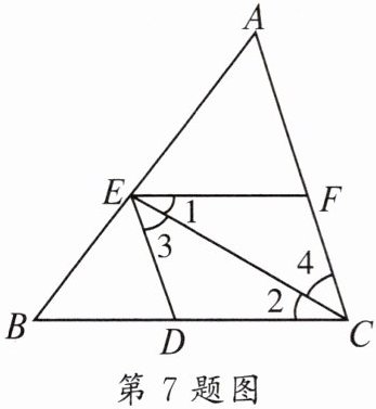 7. 如图,下列条件中,能判定$DE// AC$的是 ()