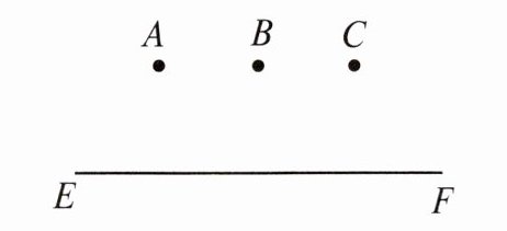11. 如图,已知$A,B,C三点及直线EF$,过$B点作AB// EF$,过$B点作BC// EF$,那么$A,B,C$三点一定在同一条直线上,依据是______。
