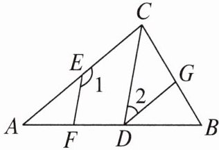 - 再根据“内错角相等,两直线平行”,由$\angle ACD=\angle2$,可以得出$DG// AC$。