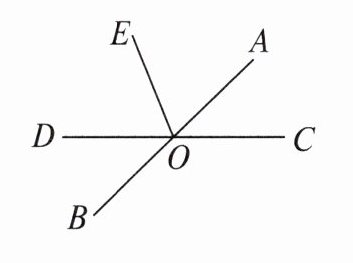 (2)若射线$OF⊥AB于点O$,请补全图形,并求$∠EOF$的度数。