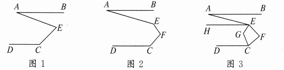 ②如图3,若$∠AEF和∠DCF的平分线交于点G$,请直接写出$∠EGC与∠F$的数量关系。
