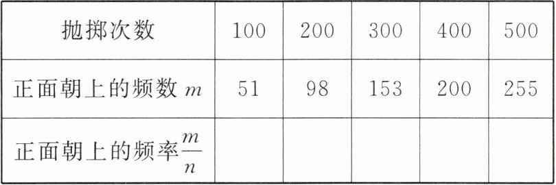 15. 下面是小明和同学做“抛掷质地均匀的硬币试验”获得的数据。