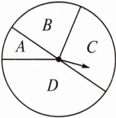16. 如图,把一个圆形转盘按1:2:3:4的比例分成A,B,C,D四个扇形区域,自由转动转盘,停止后指针落在C区域的概率是______。