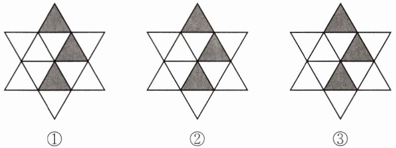 (1) 对于图①,可将与最下面灰色三角形关于水平轴对称的小等边三角形涂为灰色(答案不唯一);对于图②,可将与右侧灰色三角形关于竖直轴对称的小等边三角形涂为灰色(答案不唯一);对于图③,可将与左侧灰色三角形关于某条对角线对称的小等边三角形涂为灰色(答案不唯一)。