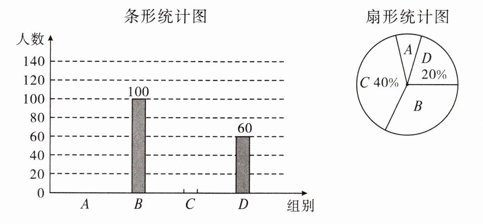 (2)$C$组人数为$300×40\%=120$人,$A$组人数为$300 - 100 - 120 - 60 = 20$人,据此补全条形统计图。