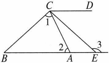 15. 如图,$∠B= 42^{\circ },∠1= ∠2+10^{\circ },∠ACD= 64^{\circ },∠ACD$的平分线与 BA 的延长线相交于点 E。