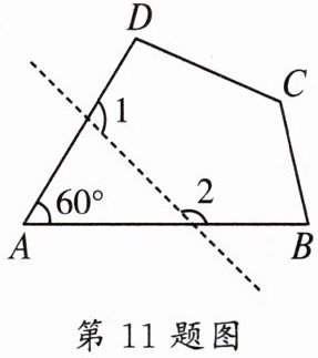 11. 如图,在四边形 ABCD 中,若去掉一个$60^{\circ }$的角,得到一个五边形,则$∠1+$