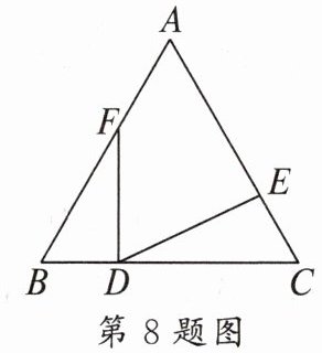 8. 如图,在$△ABC$中,$∠B= ∠C,BD= CE,BF= CD$,则$∠EDF$等于 ()