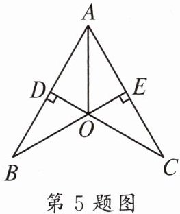 5. 如图,已知$CD⊥AB$于点 D,$BE⊥AC$于点 E,CD,BE 交于点 O,且 AO 平分$∠BAC$,则图中的全等三角形共有 ()