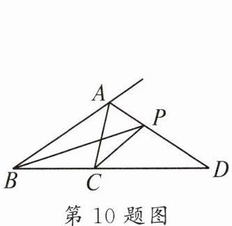 10. 如图,在$△ABC$中,AD是$∠A$的外角平分线,P是AD上异于点A的任意一点,设$PB= m,PC= n,AB= c,AC= b$,则$(m+n)与(b+c)$的大小关系是 ()