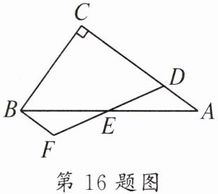 16. 如图,$Rt△ABC$中,$∠C= 90^{\circ }$,E为AB中点,D为AC上一点,$BF// AC$交DE的延长线于点F。$AC= 6,BC= 5$,则四边形FBCD周长的最小值是____。