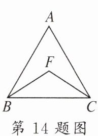 14. 如图,在$△ABC$中,BF平分$∠ABC$,CF平分$∠ACB,∠BFC= 125^{\circ }$,则$∠A$的度数为____。